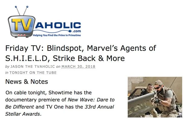 TVAHOLIC – March 30, 2018 – “Friday TV: Blindspot, Marvel’s Agents of S.H.I.E.L.D, Strike Back & More.” Includes NEW WAVE: DARE TO BE DIFFERENT, by Jason the TVAHOLIC